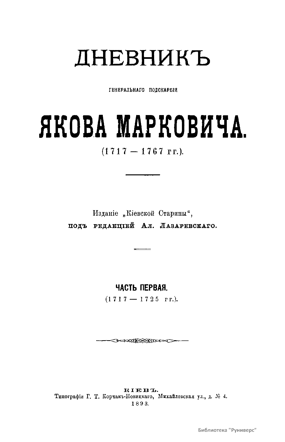 Дневникъ генеральнаго подскарбiя Якова Марковича (1717-1767 гг.)