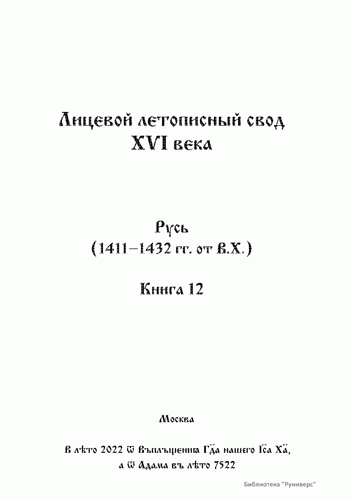Лицевой летописный свод Ивана Грозного. Русь (1411 - 1432 гг. от. В.Х.) Книга 12