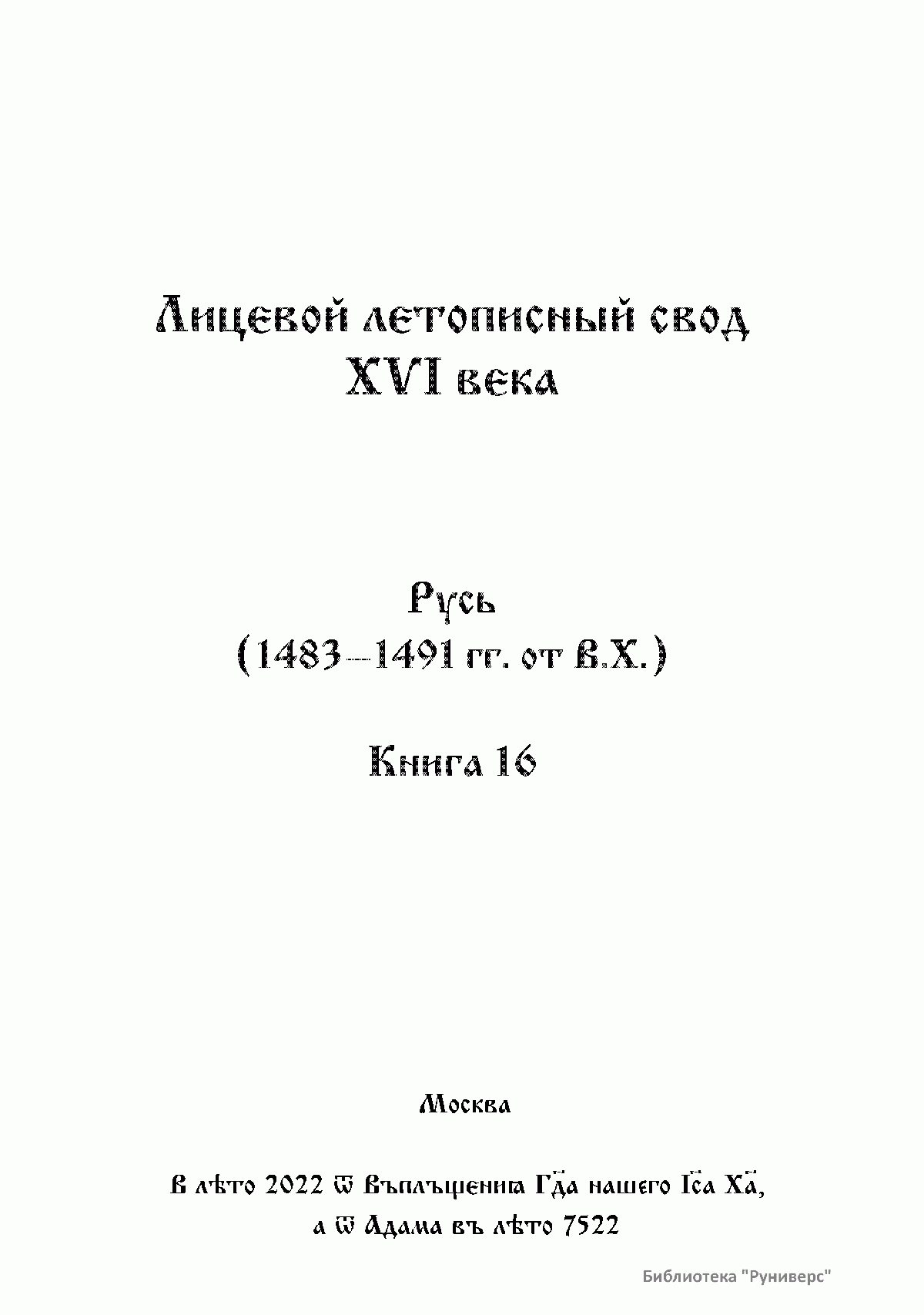 Лицевой летописный свод Ивана Грозного. Русь (1483 - 1491 гг. от В.Х.) Книга 16