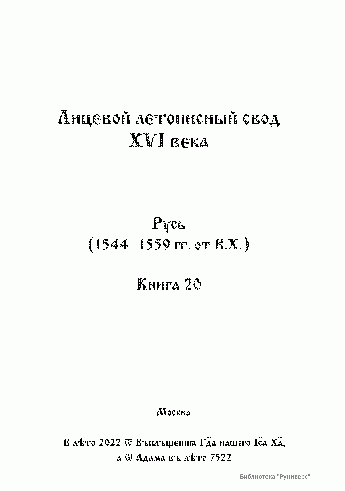 Лицевой летописный свод Ивана Грозного. Русь (1544 - 1559 гг. от В.Х.) Книга 20