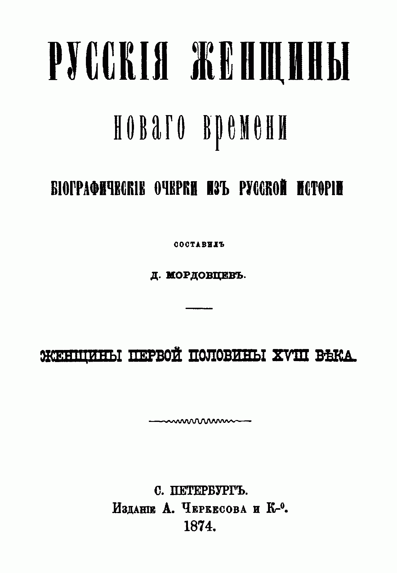 По мнению автора книги, история русской женщины не только пополняет русскую историю вообще, но и уясняет её больше, чем вся сумма прочих исторических материалов. Каков характер и направление исторической эпохи, такой является и женщина едва ли не исключительнее, чем мужчина. Труд Д. Мордовцева состоит из трёх частей – сообразно трём заметно друг от друга отличающимся историческим эпохам. Это первые пятьдесят лет от начала петровских реформ и окончательного введения России в общий строй европейских держав до возрождения начал сознания русского национального чувства; вторые пятьдесят лет – эпоха развития этого чувства – до конца восемнадцатого столетия; девятнадцатое столетие. Настоящая книга посвящена женщине первой половины восемнадцатого века. Читатель увидит, как русская женщина, «рванувшись из терема в широко раскрытую Петром дверь и надев немецкое платье вместо сарафана и телогреи, чтобы блистать в ассамблее и при дворе, наделала немало ошибок и сама немало пострадала, пока не поняла несколько отчётливее своего женского призвания». – Книга включает девятнадцать биографий.