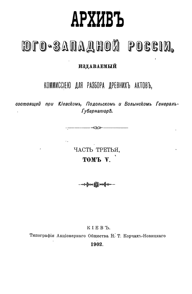 Архив Юго-Западной России. Часть 3. Том V.
