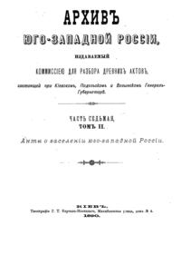 В серии «Архив Юго-Западной России» были напечатаны документы Киевского архива. Издание было предпринято Киевской археографической комиссией с 1859 по 1911 год. Всего вышло 34 тома.