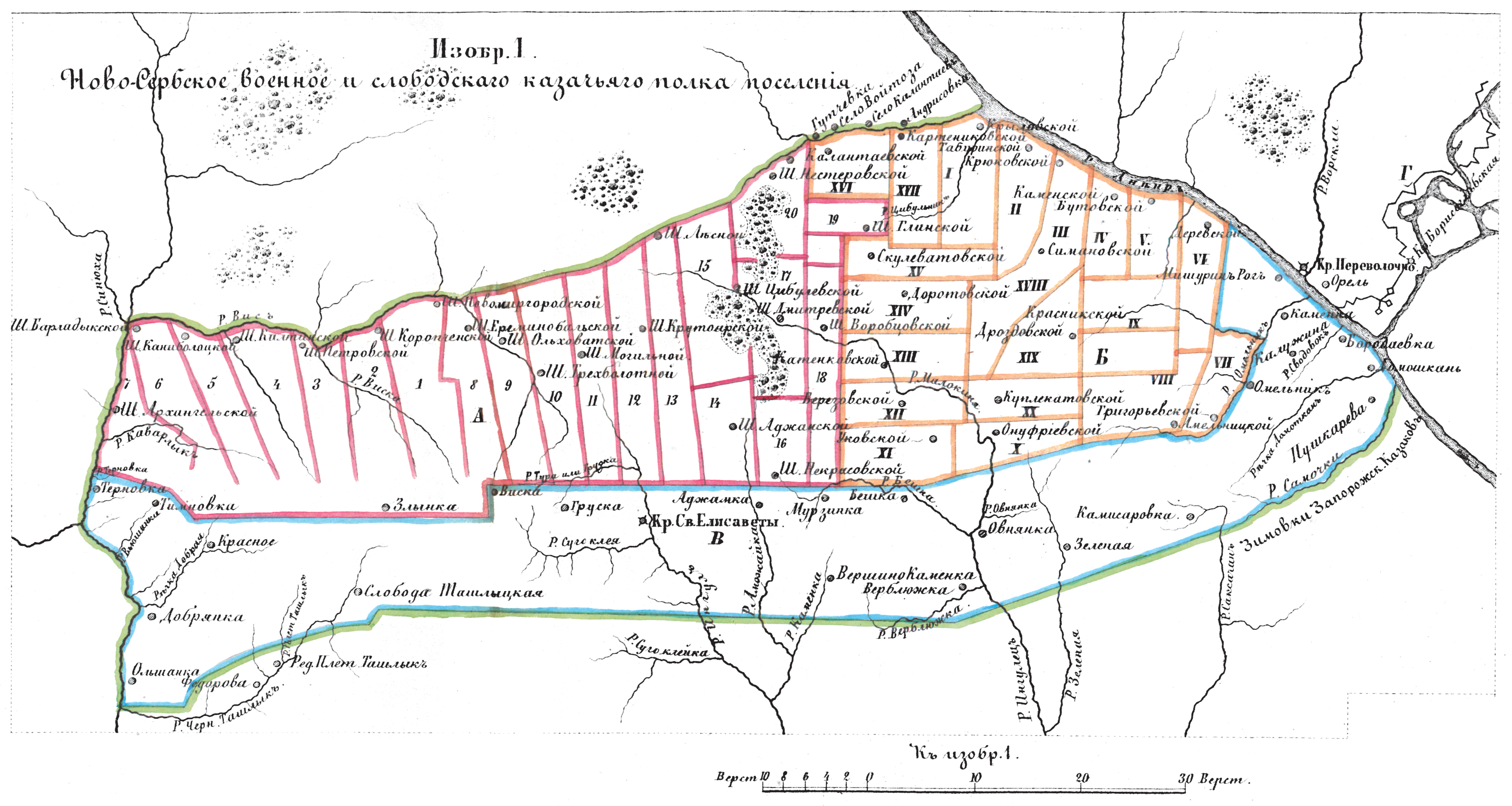 Пограничные линии. Ново-Сербское военное и слободкого казачьего полка поселение