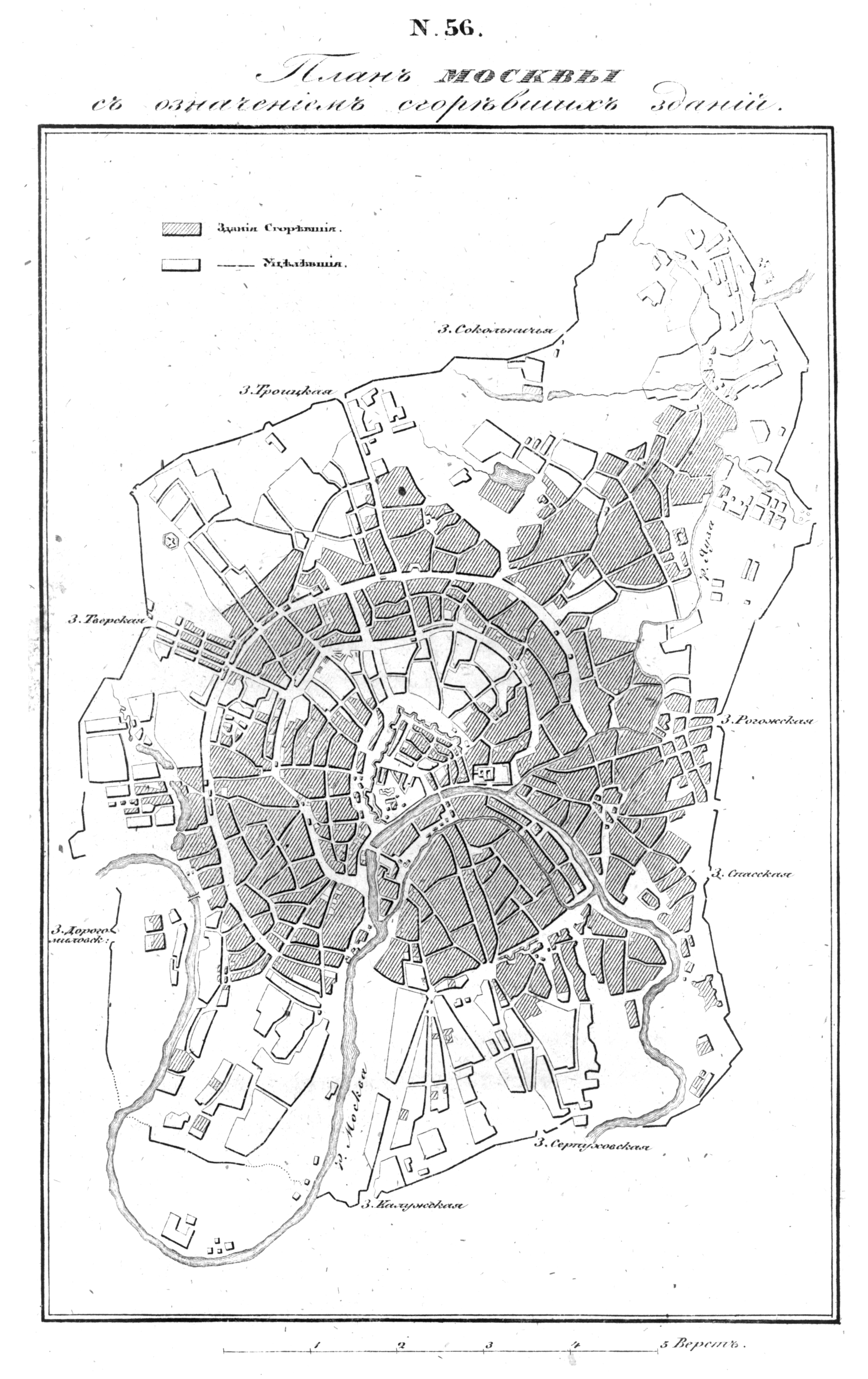 План Москвы, с обозначением сгоревших зданий