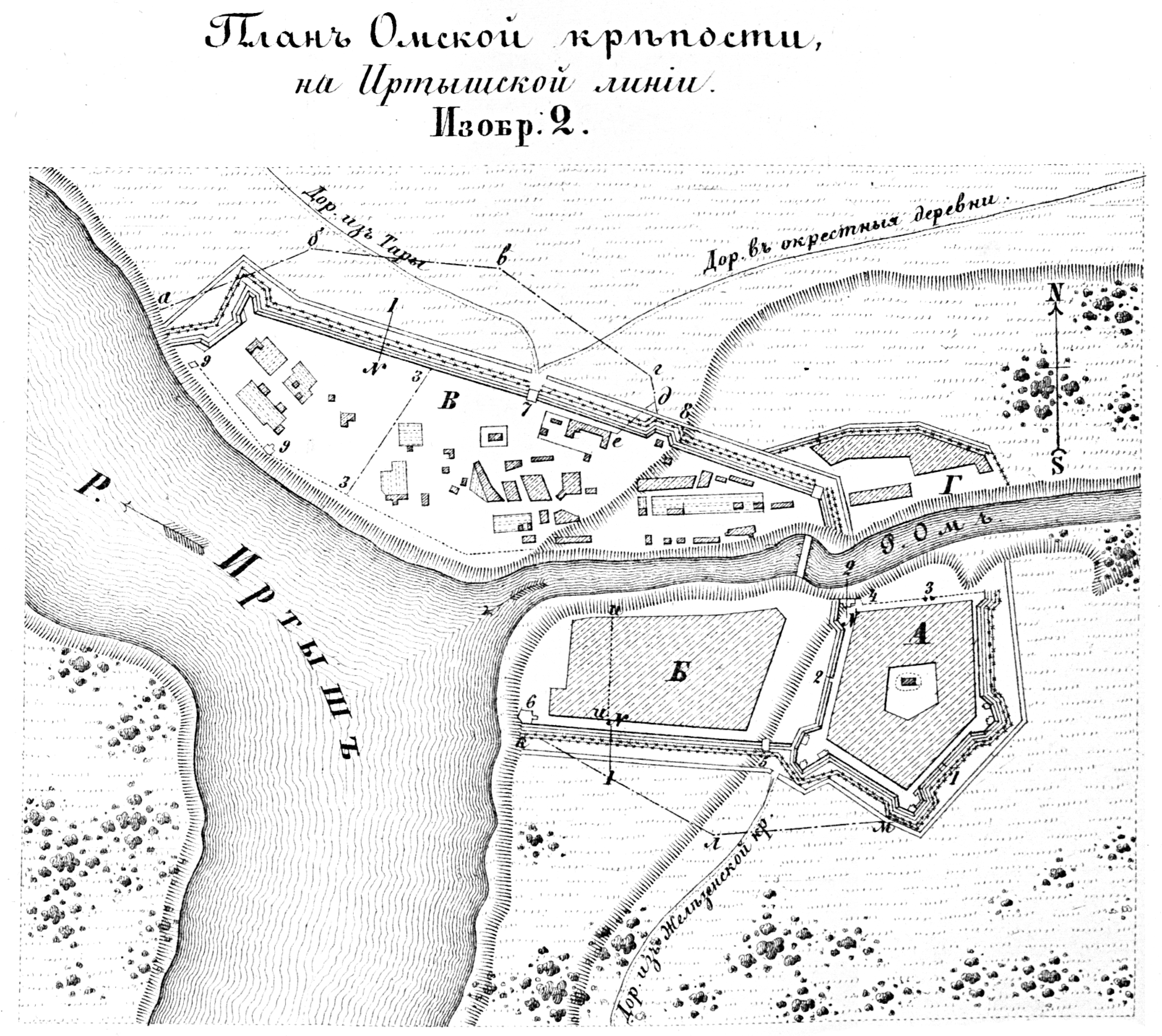 Пограничные линии. План Омской крепости на Иртышской линии