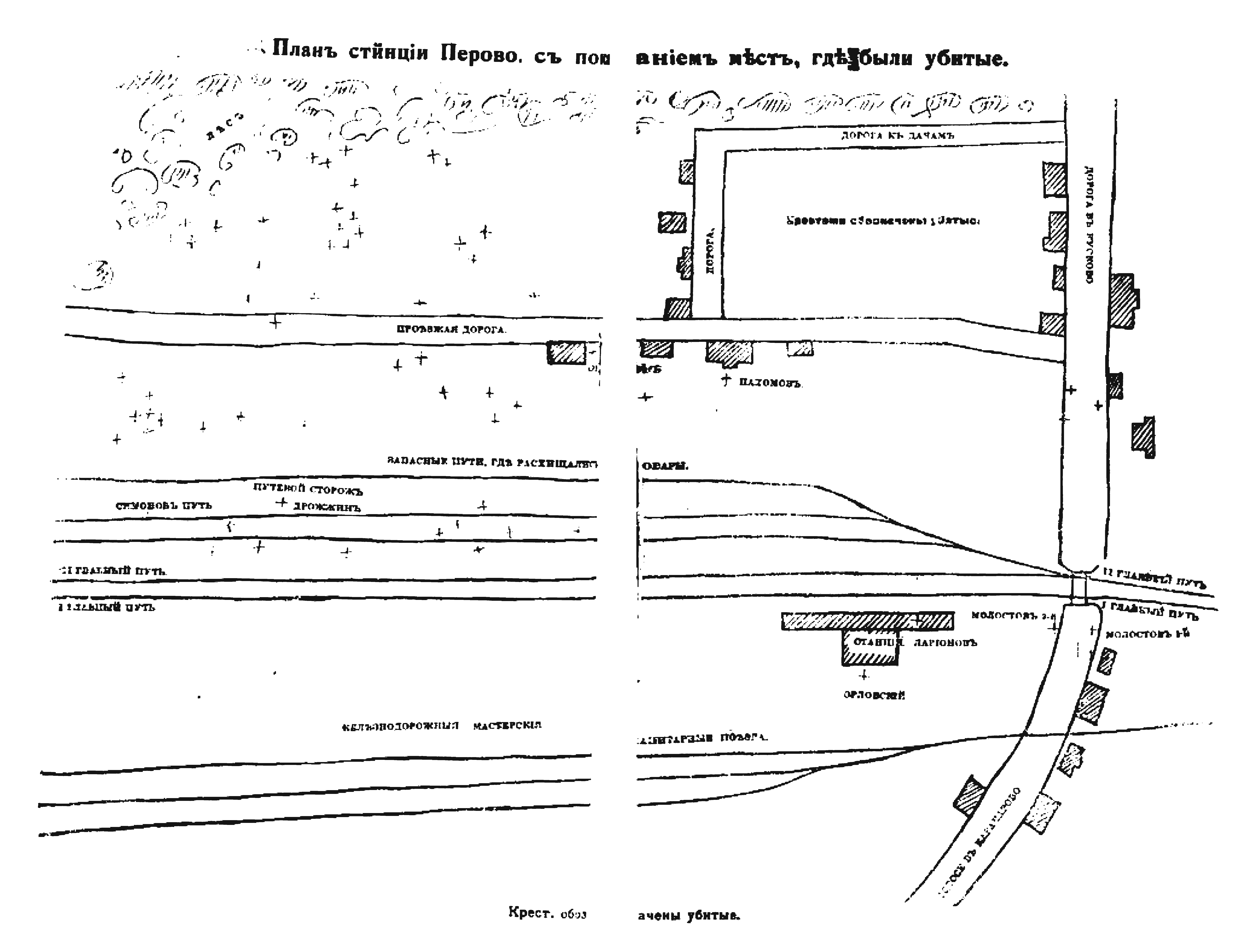 Станция Перово с показанием мест, где были убитые