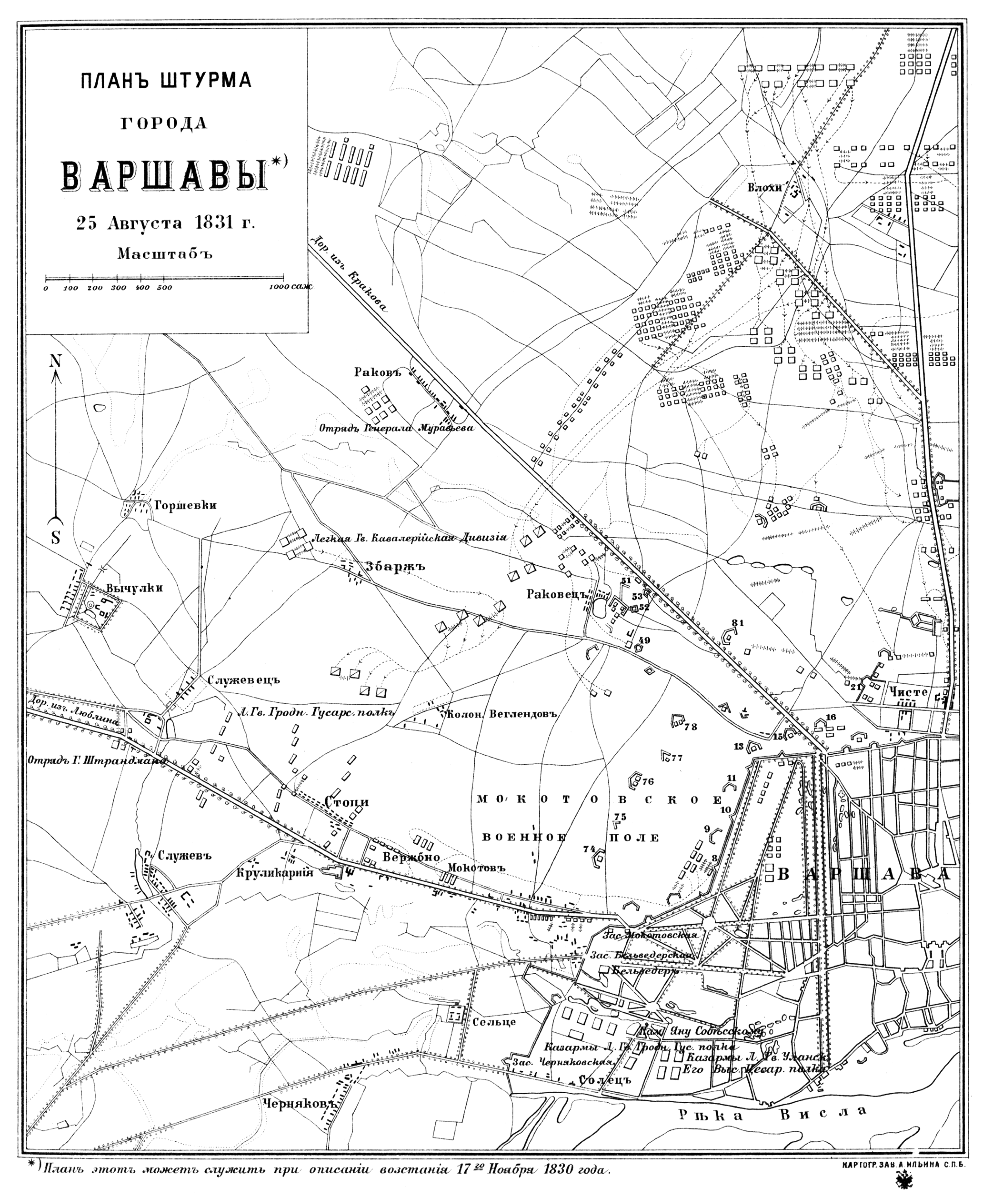 План штурма города Варшавы 25 августа 1831 года