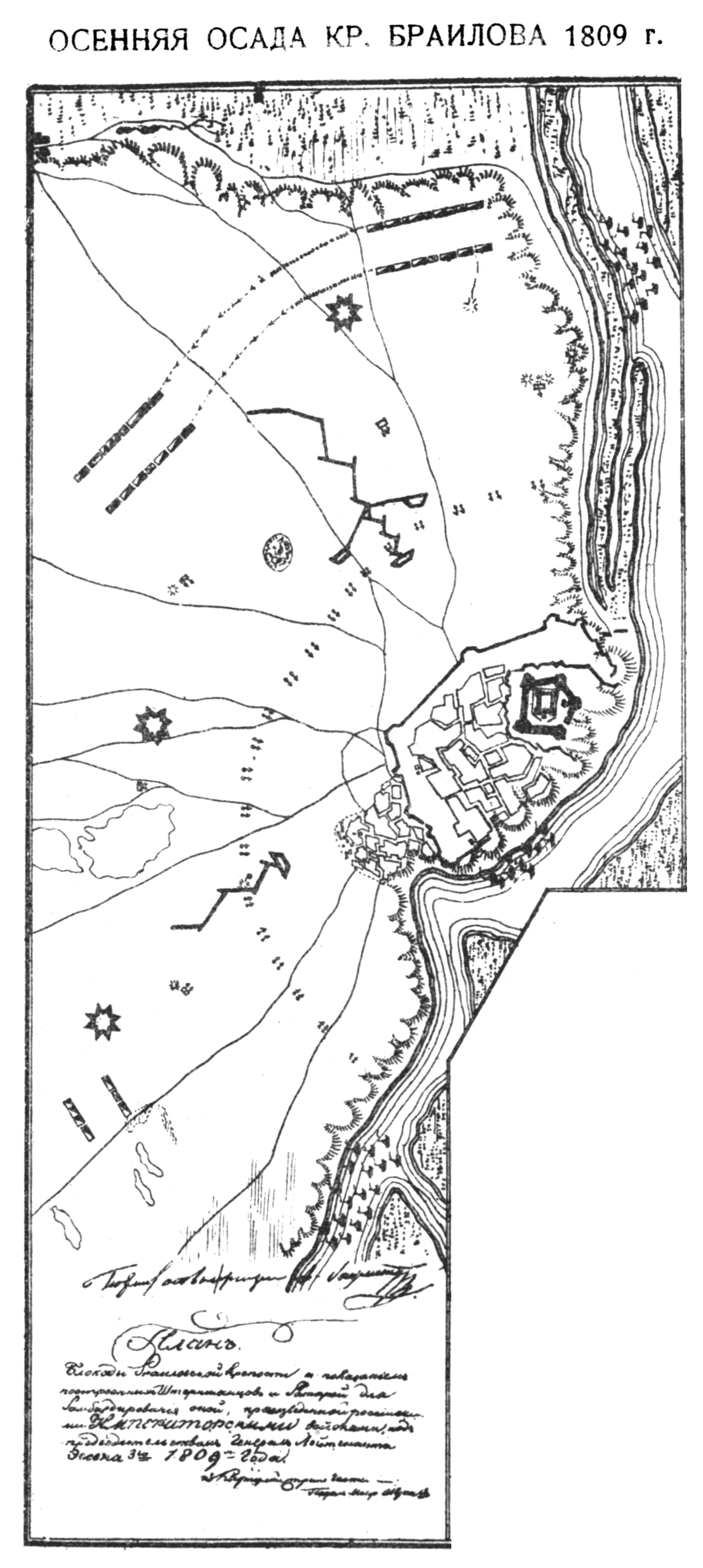 Осенняя осада крепости Браилова 1809 год. План блокады крепости войсками под предводительством Генерал-лейтенанта Эссена 3-го