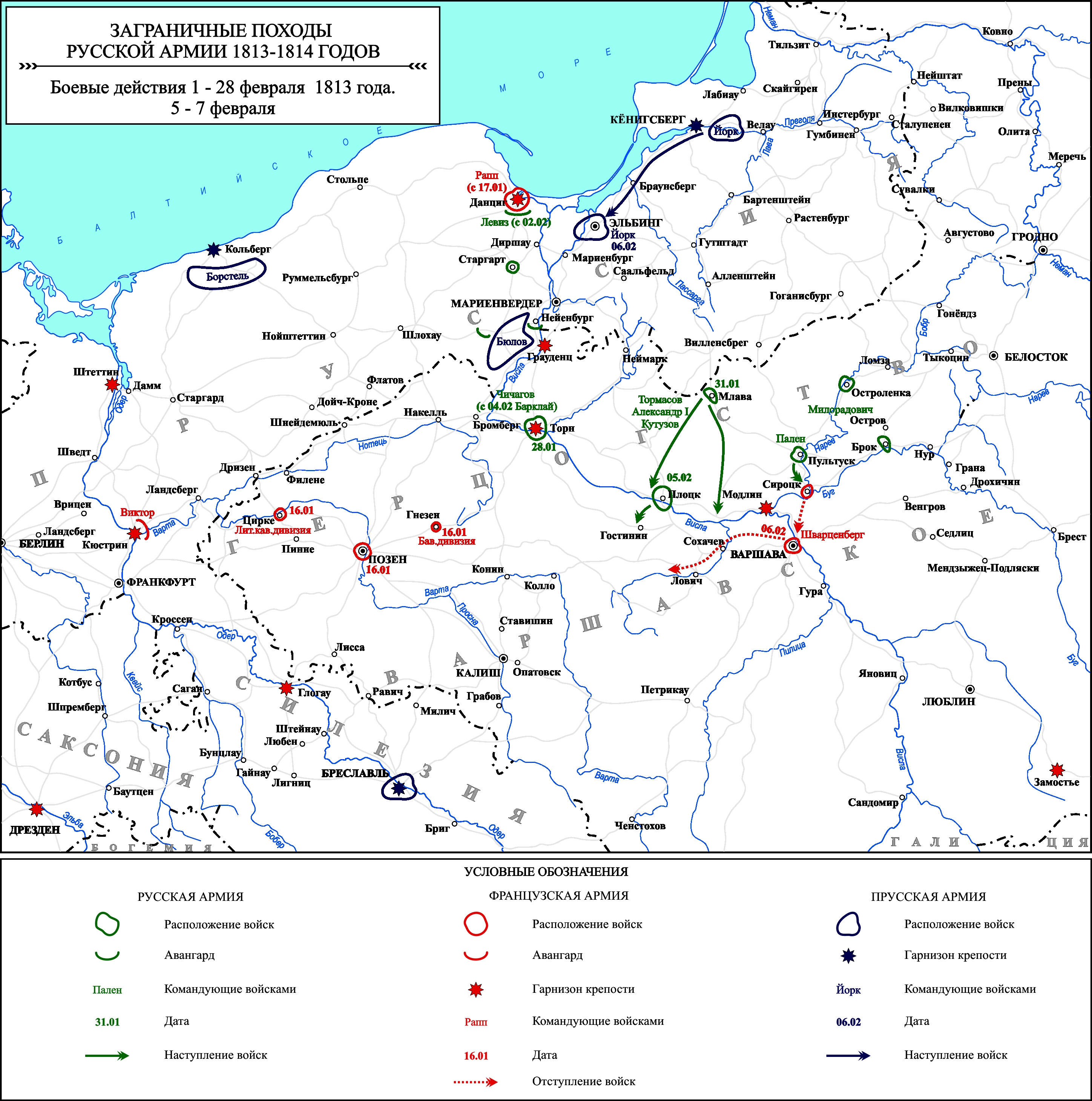 Заграничные походы Русской армии 1813-1814 гг. Положение на 1 февраля 1813 г.